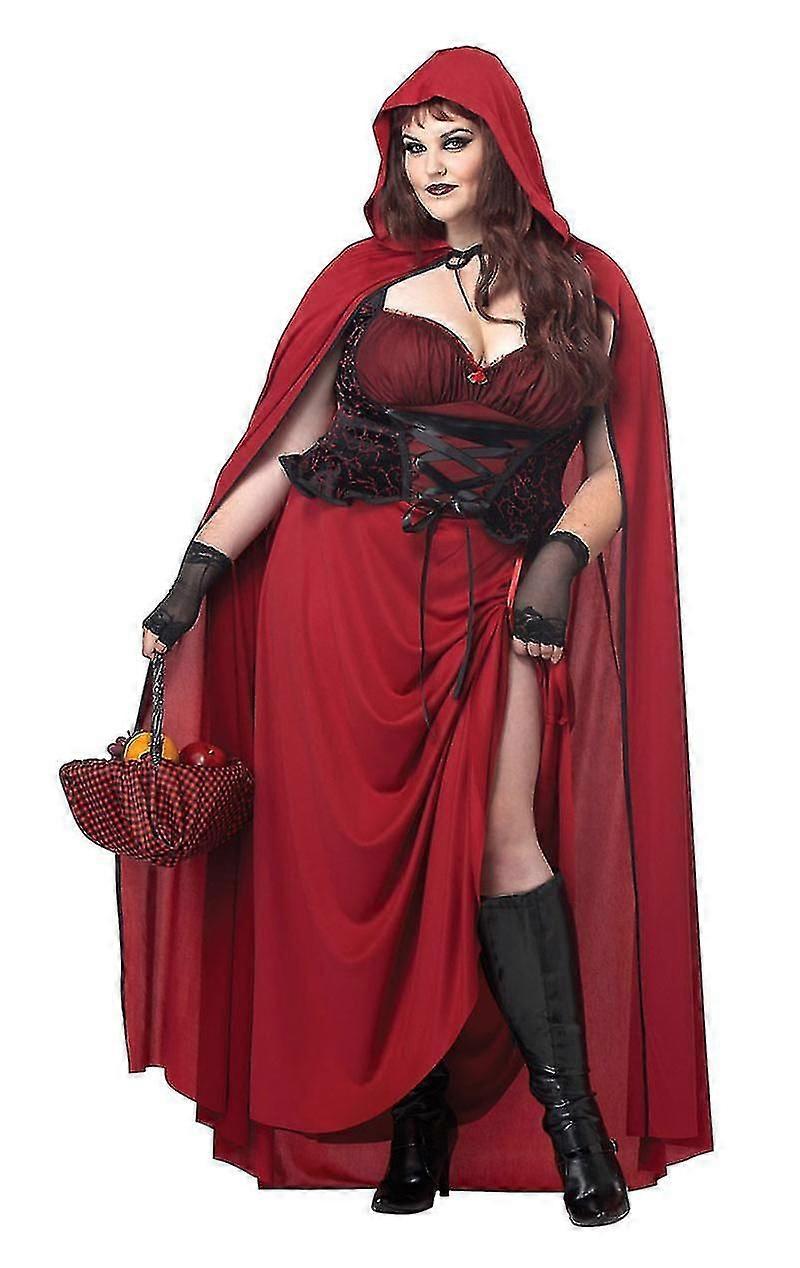 Womens Dark Red Riding Hood Plus Size Fairy Tale Halloween Fancy Dress Costume