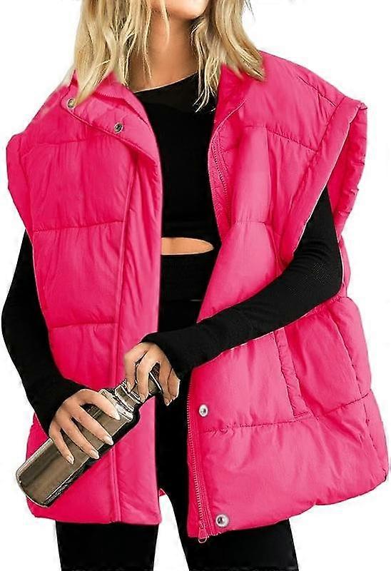 Womens Oversized Puffer Vest Stand Collar Full Zip Sleeveless Bubble Puffer Vest