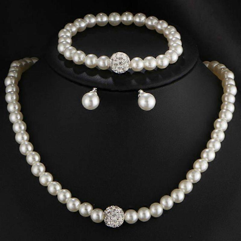Womens Bride Wedding Set Rhinestone Faux Pearl Necklace Bracelet Earrings