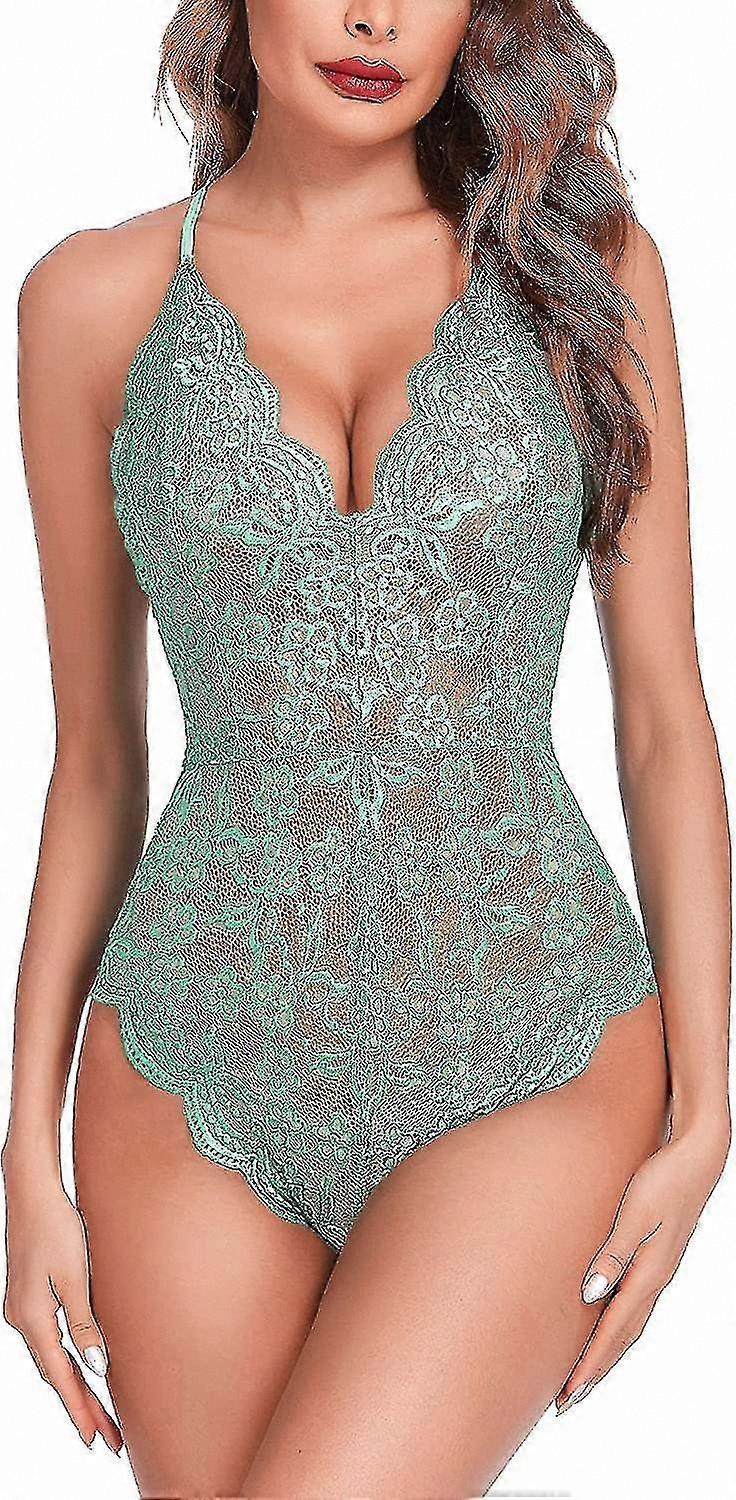 Women's Alluring Lace Bodysuit - Elegant One-Piece Undergarment with Deep V Design