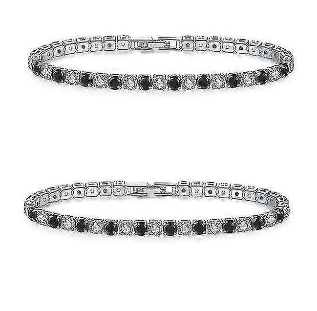 2 Bracelets for Womens Girls Ladies - Silver Tennis Bracelet, White Gold Plated Cubic Zirconia Bracelet | Classic Elegant Tennis Bracelets for Women J