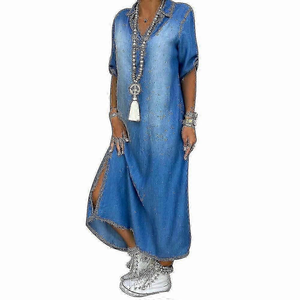 Women's Casual Denim Long Maxi Dress, Loose Fit Summer Jeans