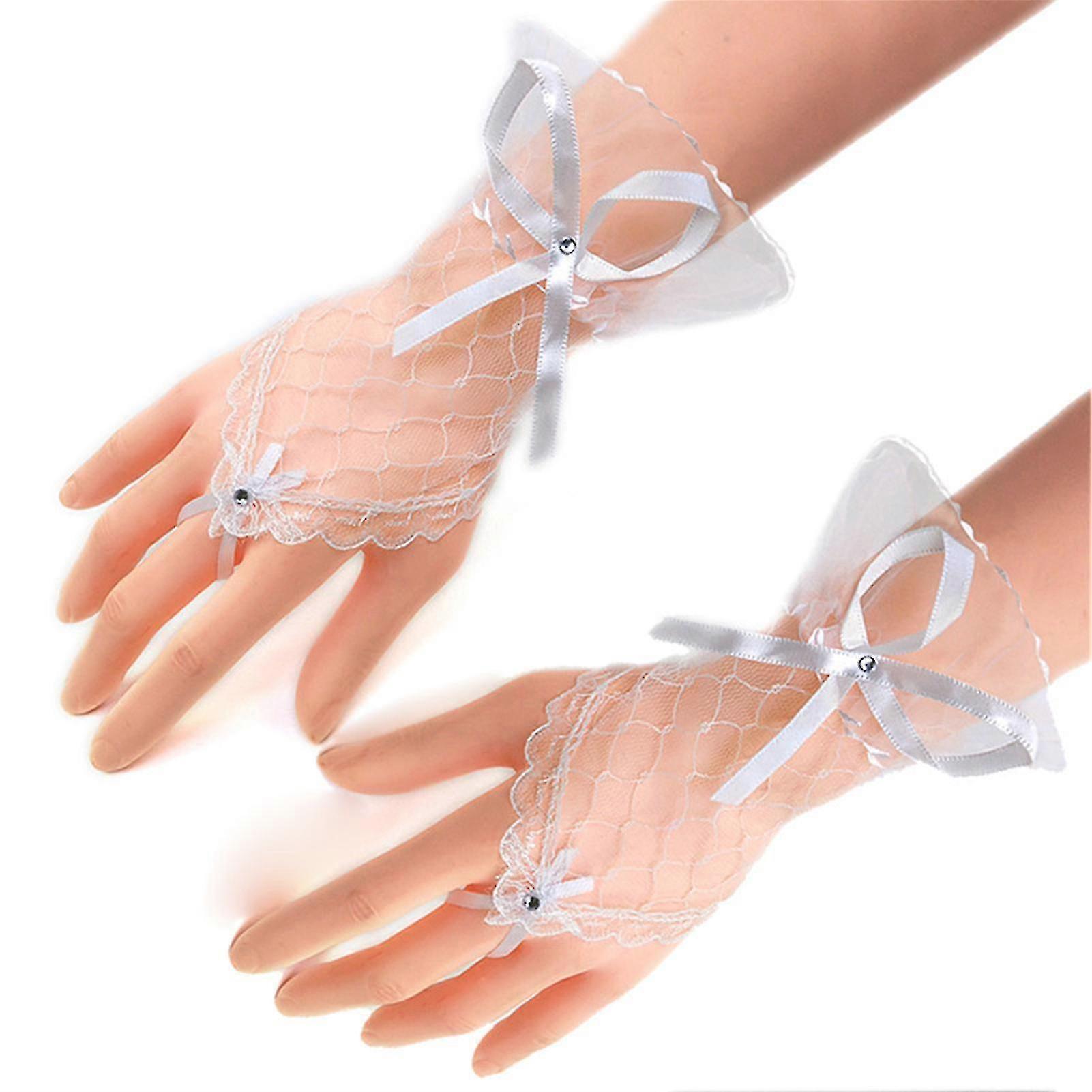 Women's Short Bridal Gloves - Fingerless, Lace Wrist, Mesh, Creamy-white