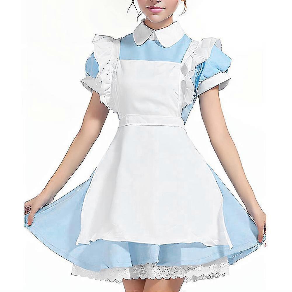 Women's Ladies Blue Alice In Wonderland Costume Halloween Christmas Cosplay Costume Maid Dress Fairy