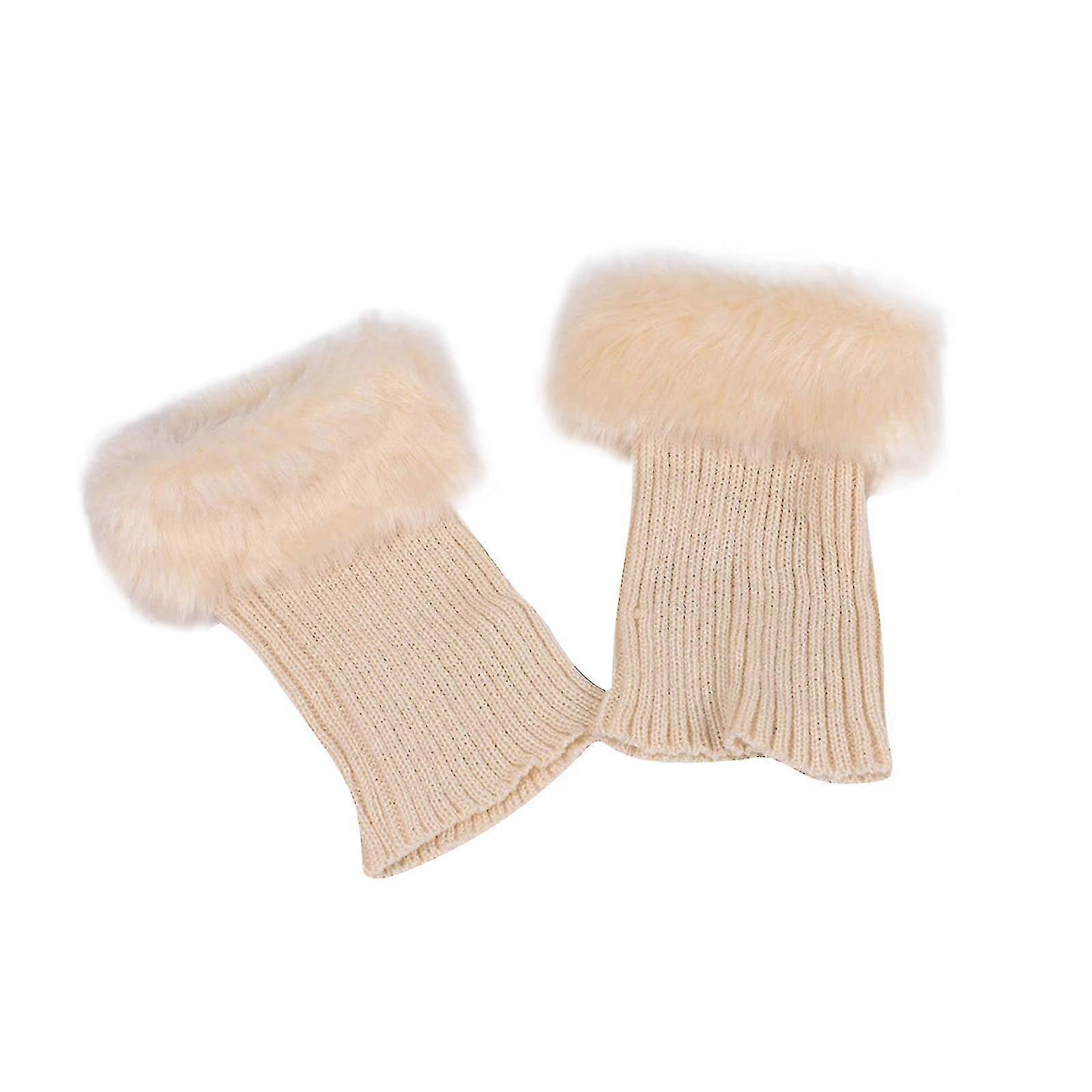 Women Faux Fur Plush Leg Warmers Short Furry Fuzzy Trim Solid Color Boot Cuffs