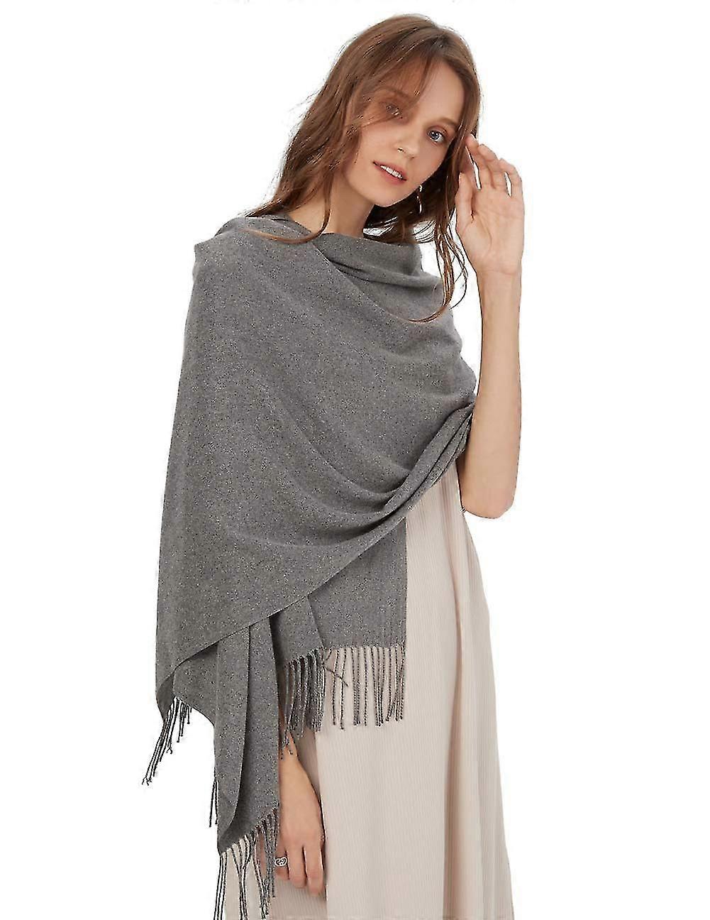 Womens Large Soft Cashmere Feel Pashmina Shawls Wraps Light Scarf Gray