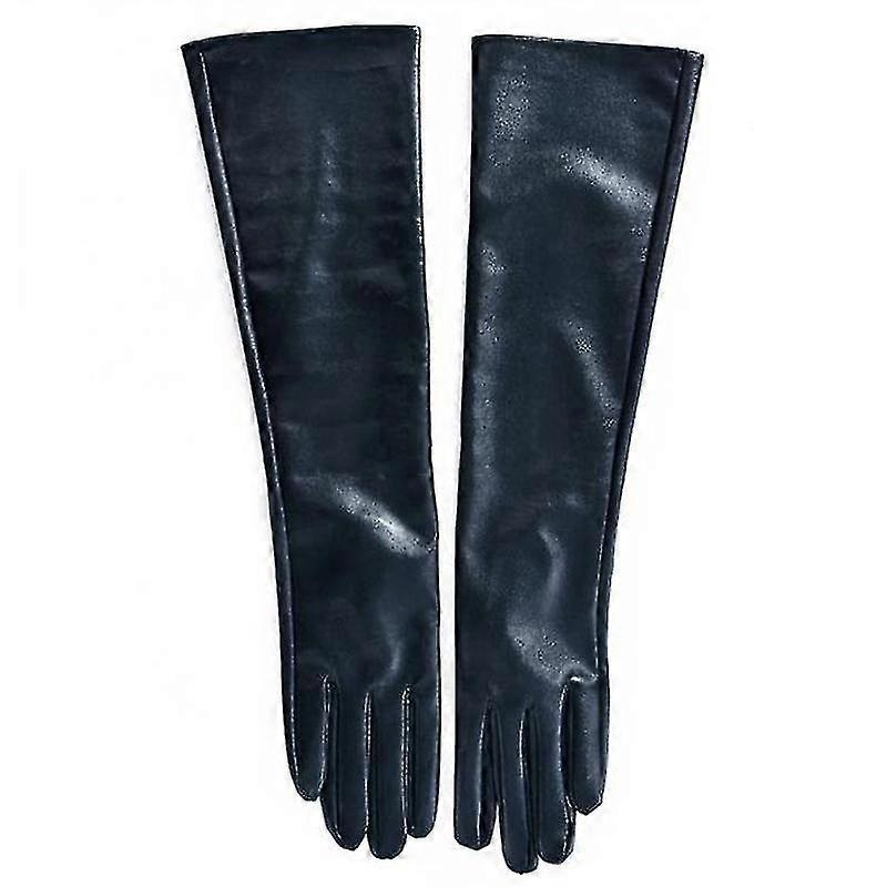 Women Long Leather Gloves Full Fingers Winter Elbow Opera Gloves