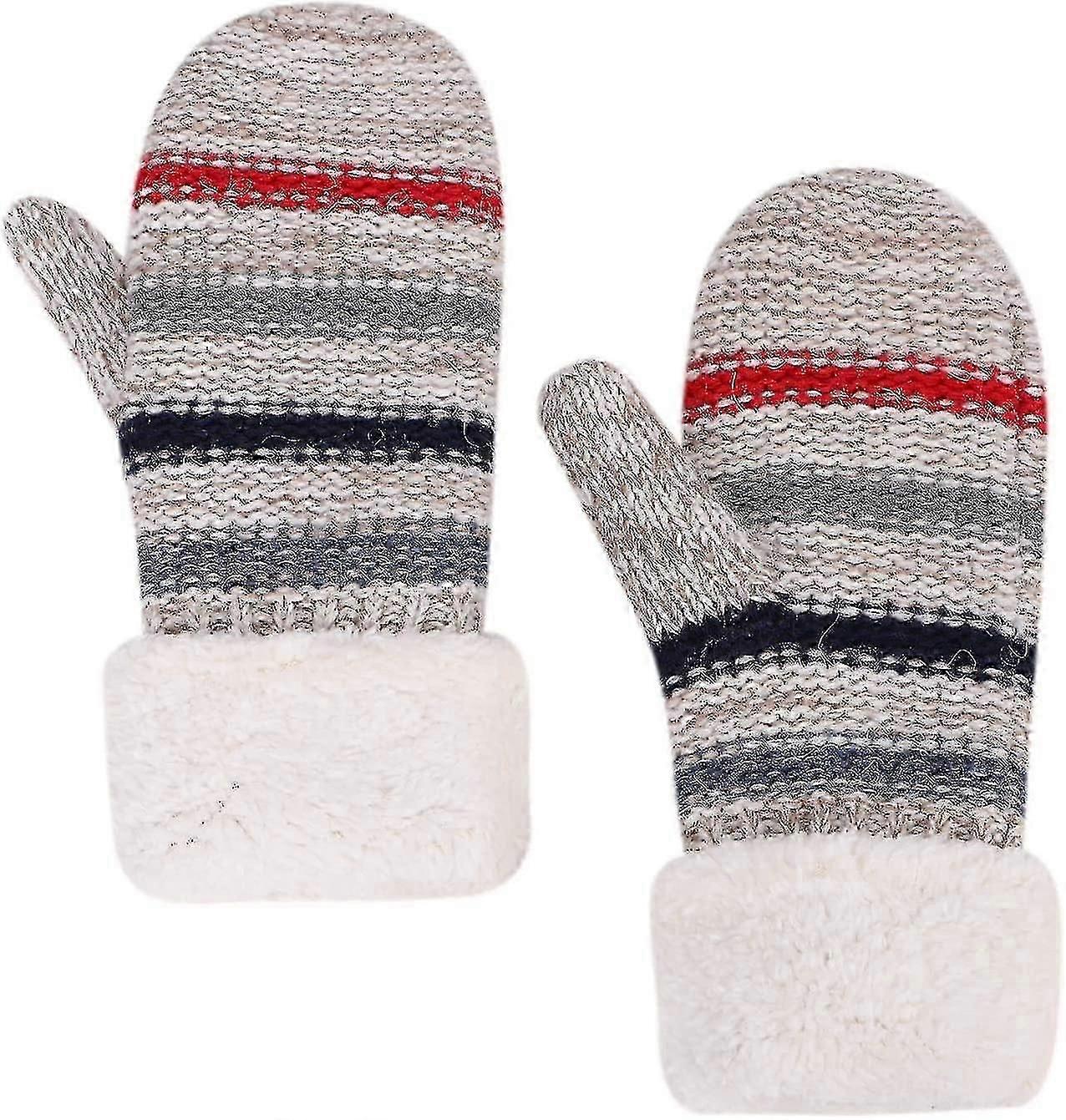 Women Winter Knitted Gloves Fleece Lined Knit Gloves Women Full Fingers Thickening Winter Warm Mittens Knit Mittens Stripe Design Knitted Mittens Ther
