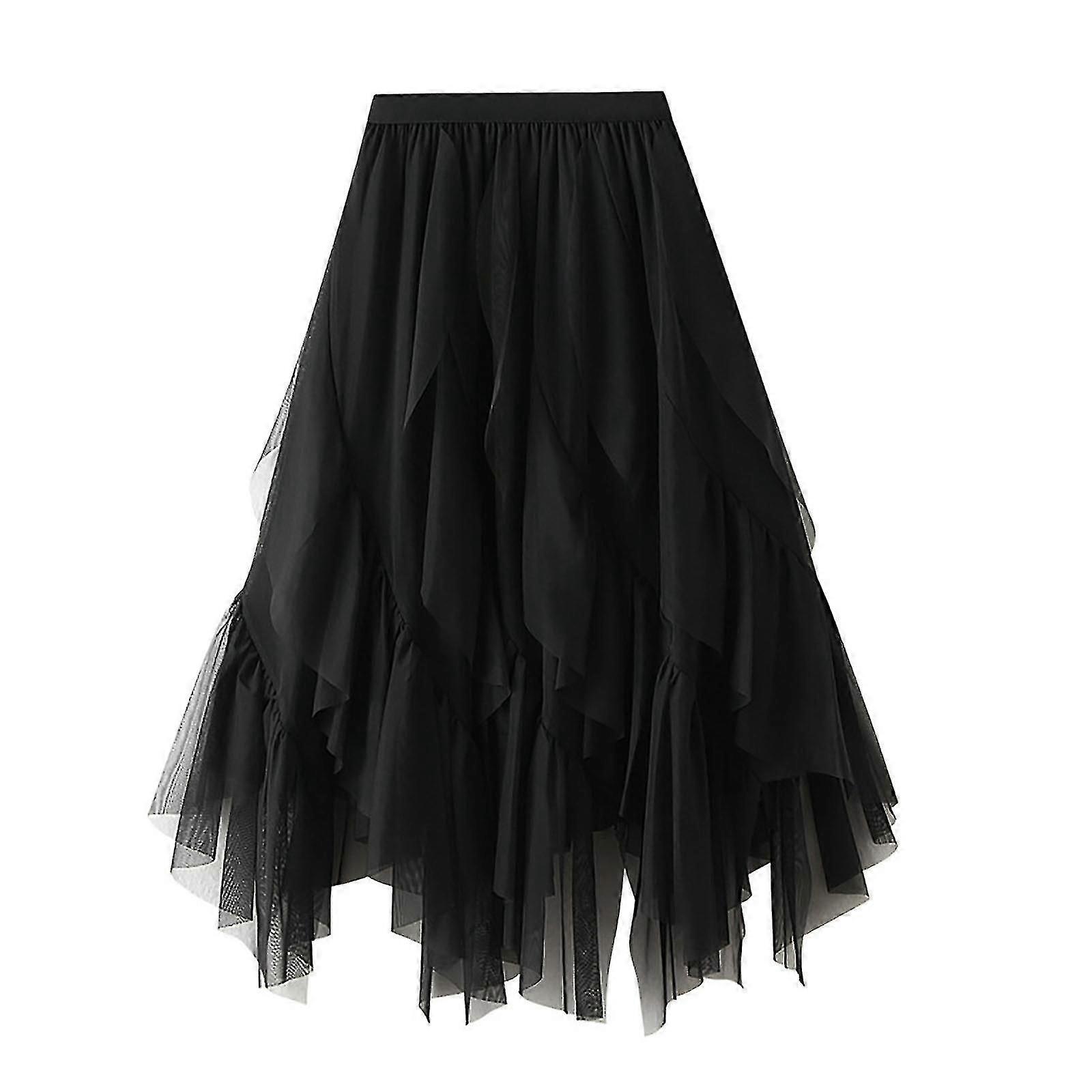 Women's Solid Color Irregular Mesh Skirt Ruffled High Waist Prom Skirt