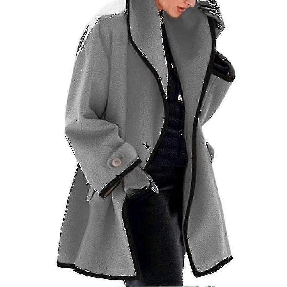 Women"s Autumn Winter Woolen Coat Hooded Color Block Woolen Coat Long Sleeve Cardigan Trench Jacket