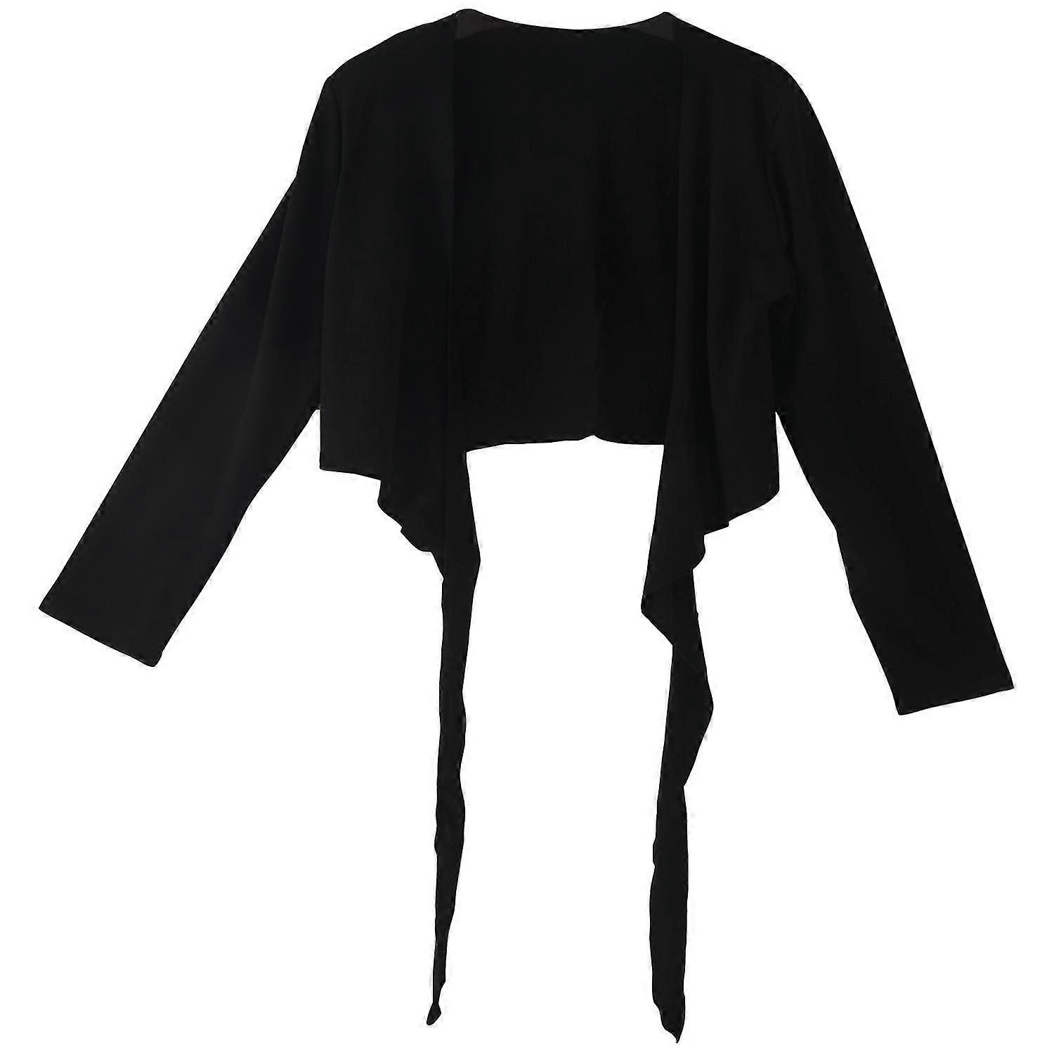 Ladies Long Sleeve Tie Up Crop Shrug Womens Wrap Cardigan Top - Black