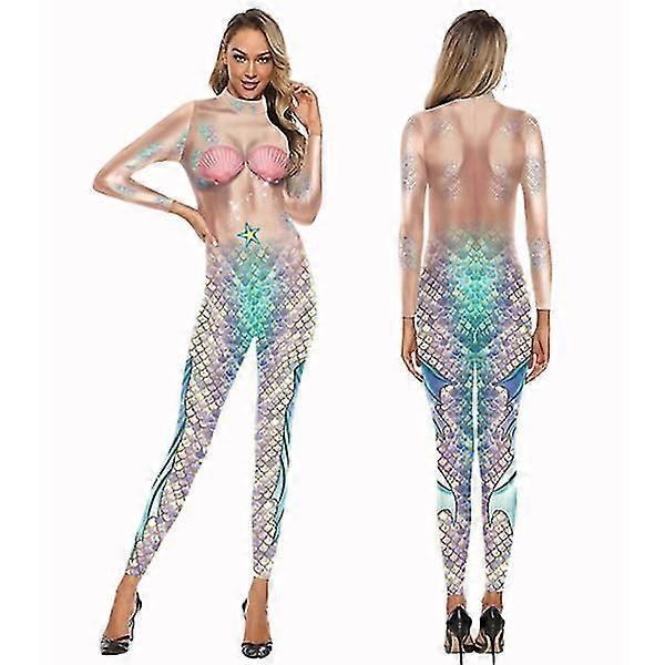 Womens 3d Mermaid Print Jumpsuit Bodysuit Halloween Carnival Cosplay Costumes