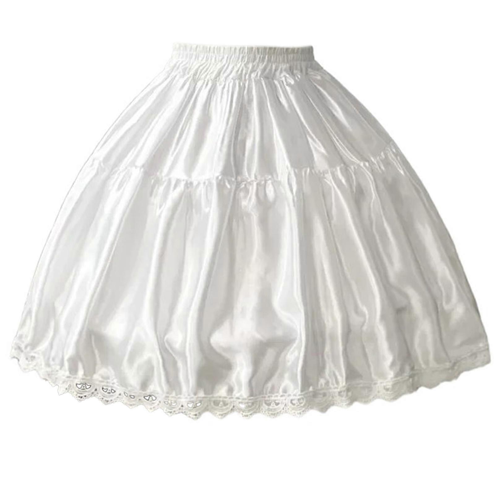 Womens 1950s Tutus Lace Trim Petticoat Adjustable 2 Hoop Midi Skirt Dress Gown Underskirt Half Slips for Cosplay Party White