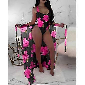 Womens Two Peice Sets Sexy U-Neck Floral Print One-Piece Swimsuit with Cover Up New Fashion 2023 Summer Beach Vacation Casual