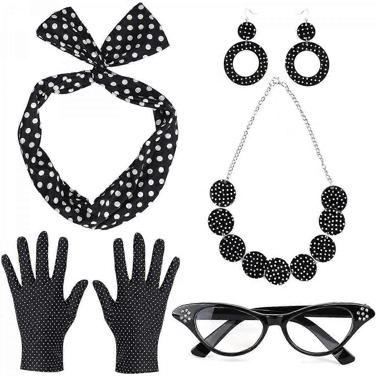 Womens 50s Costume Accessories 1950s Grease Scarf Headband Glasses Earring Set Upgrade