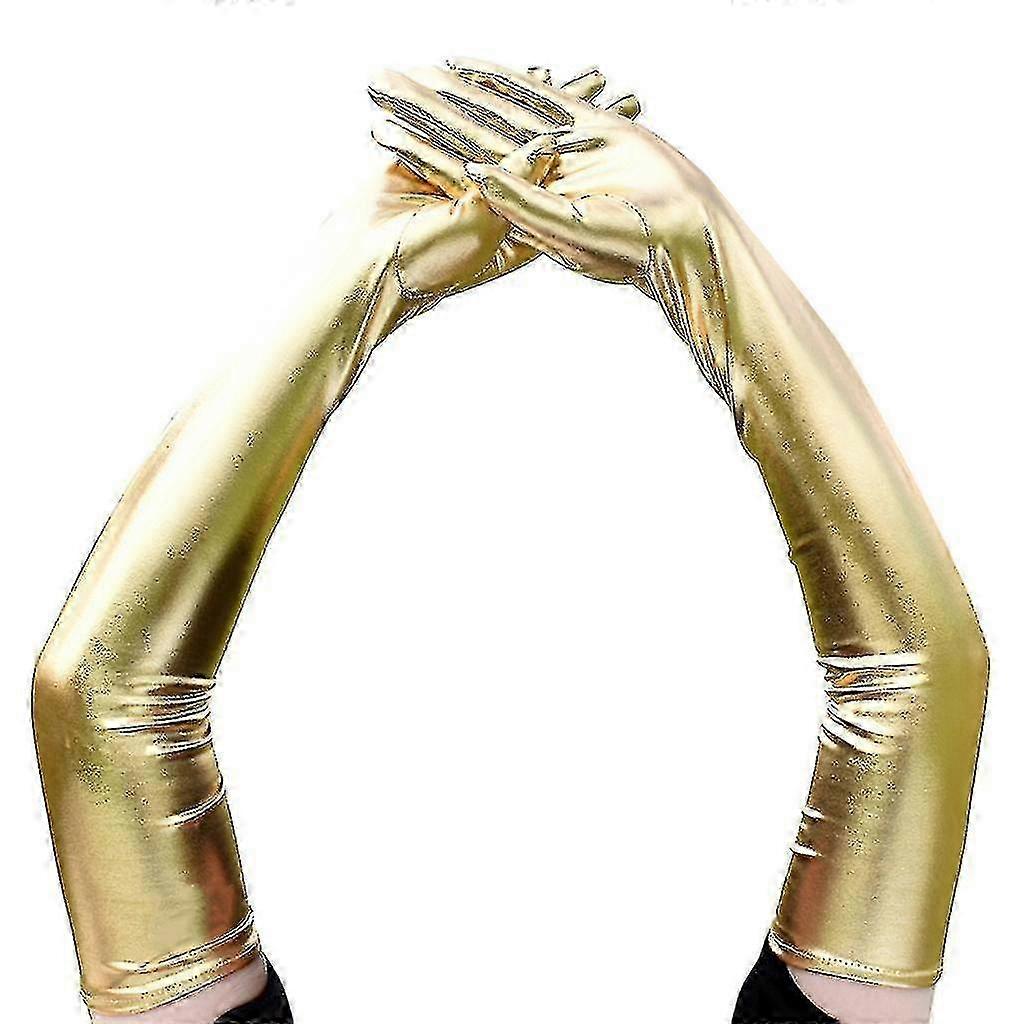Ladies 53cm Metallic Gloves Flapper Dance Opera Cosplay Fancy Dress Gold