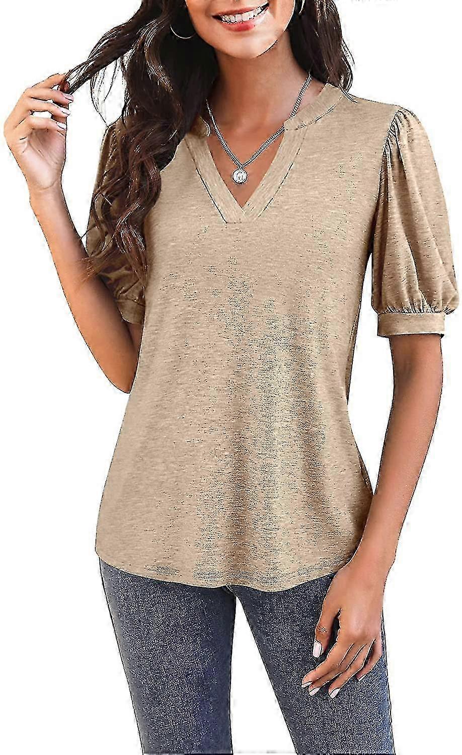 Womens V Neck T Shirts Casual Puff Short Sleeve Loose Summer Tunic Tops