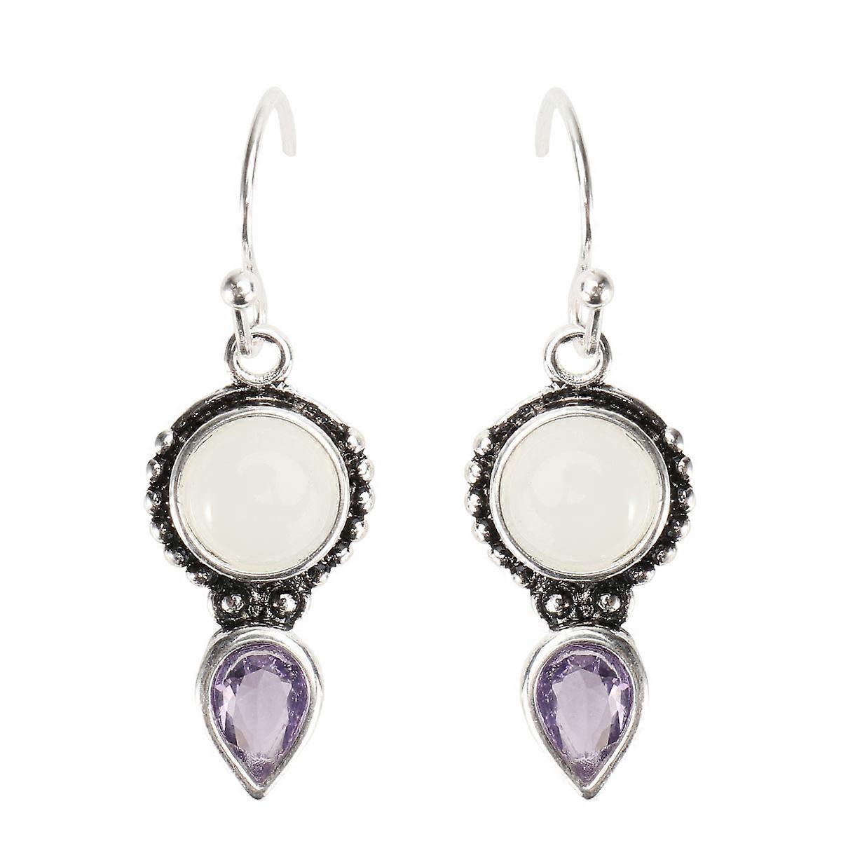 Retro Earrings Handmade Crystal Moonstone Gems Dangle Style Everyday Wear Purple 2x1cm 1 Pair