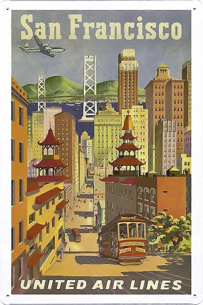 Tin Sign of Retro Vintage Travel Poster San Francisco (20x30cm) By Nature Scene Painting