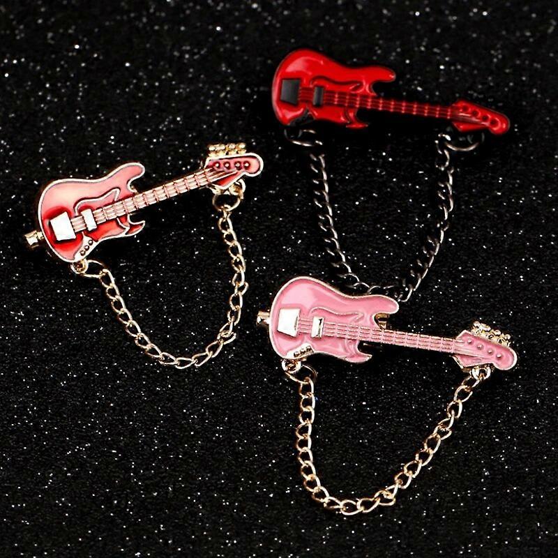 Retro Electric Guitar Brooch Musician Metal Tassels Chain Lapel Pin Mini Rock Band Brooches Suit Coat Garment Clothes Badge