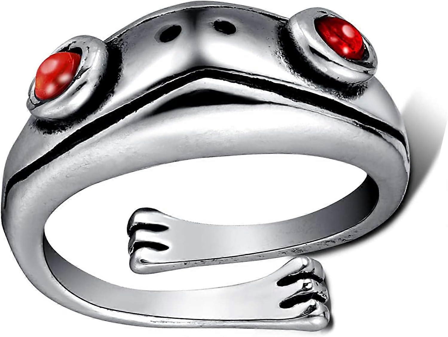 Retro Frog Ring, Vintage 925 Sterling Silver Frog Ring with Red Jade Garnet for men and women, Adjustable Creative 3D Open Ring Jewelry Gift for Valen