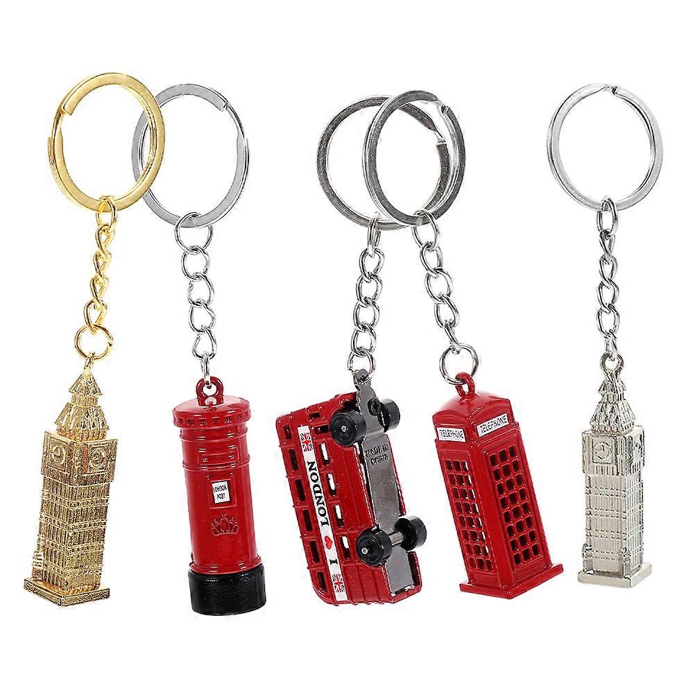 Retro Keychain London Souvenirs For Female England Style Metal Key Pendant 5Pcs