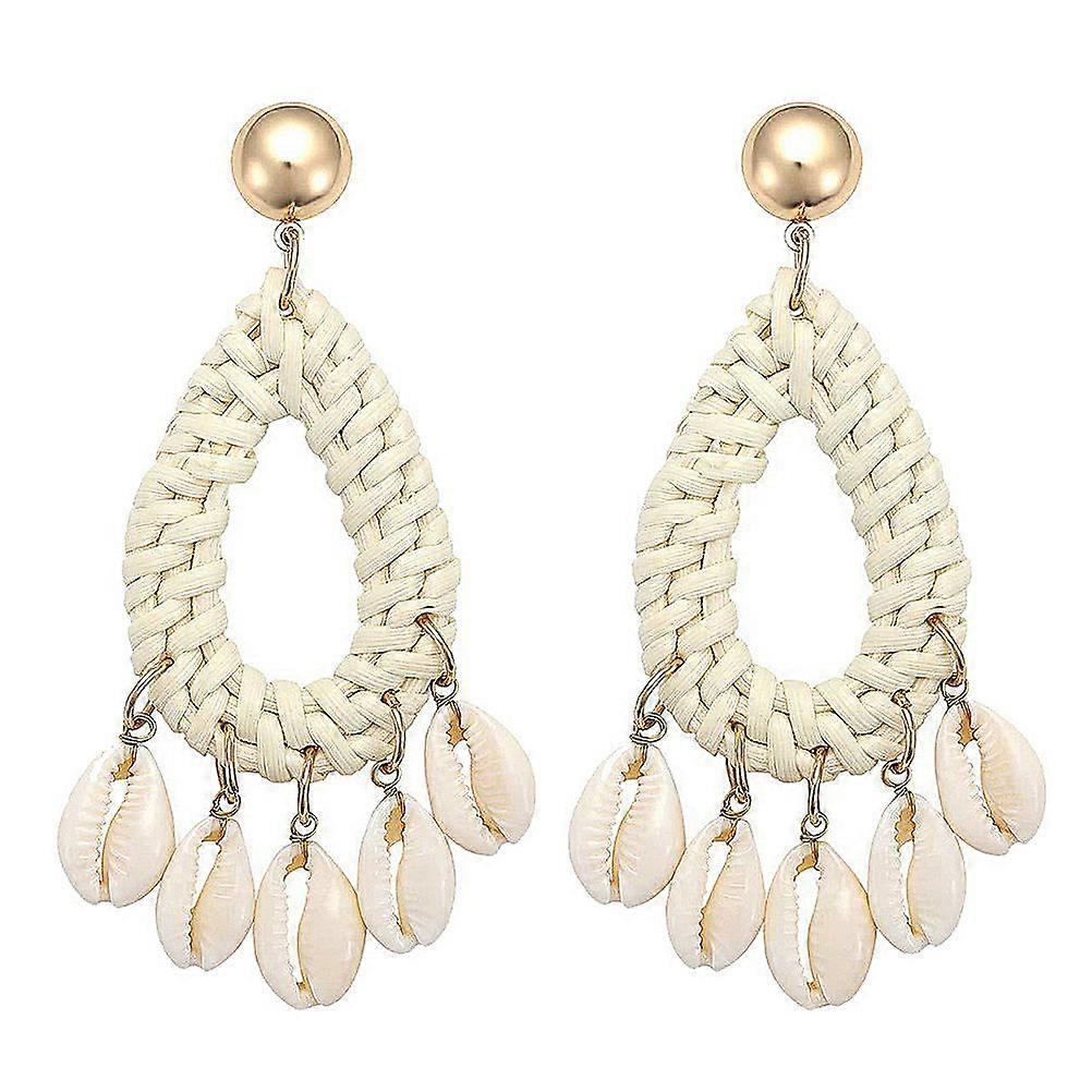 Retro Style Earrings Rattan Kintting Water Drop Shape Lightweight Durable Jewelry for Women White 1Pair