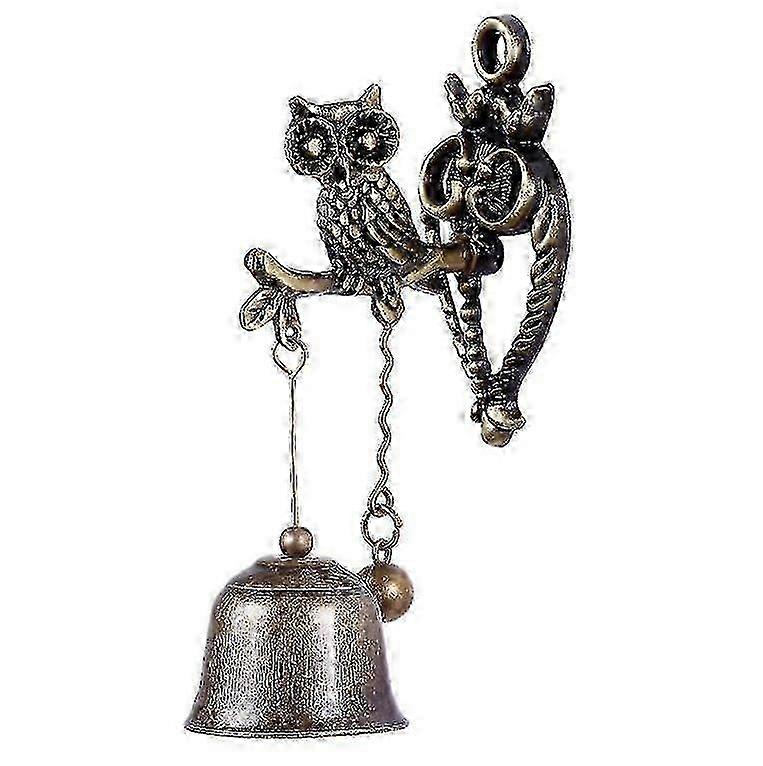 Retro style mini animal doorbell metal iron bell wind buzzer accessory (owl)