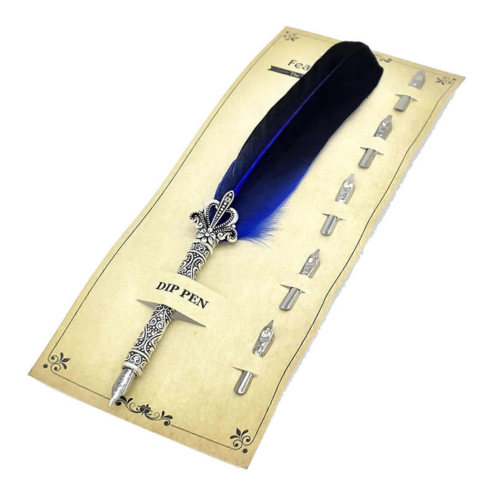 Retro Feather Dip Pen Set with 5 Pen Nibs Calligraphy Dip Pen Beginner Calligraphy Gift Set for Artist Writing Drawing sapphire