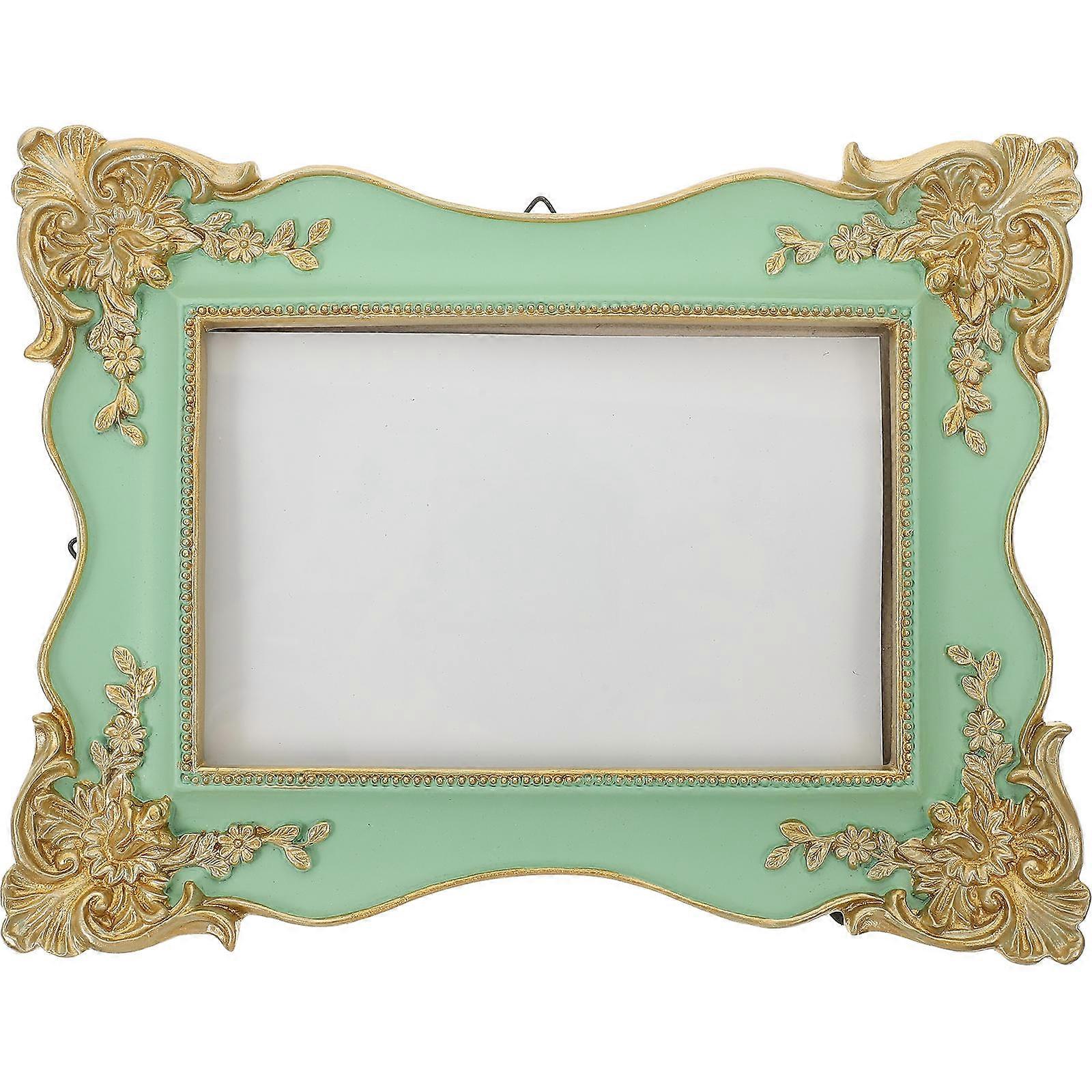 Retro Photo Frame Vintage European Style Living Room Decor Gold with Blue Outline Rectangle 1Pcs