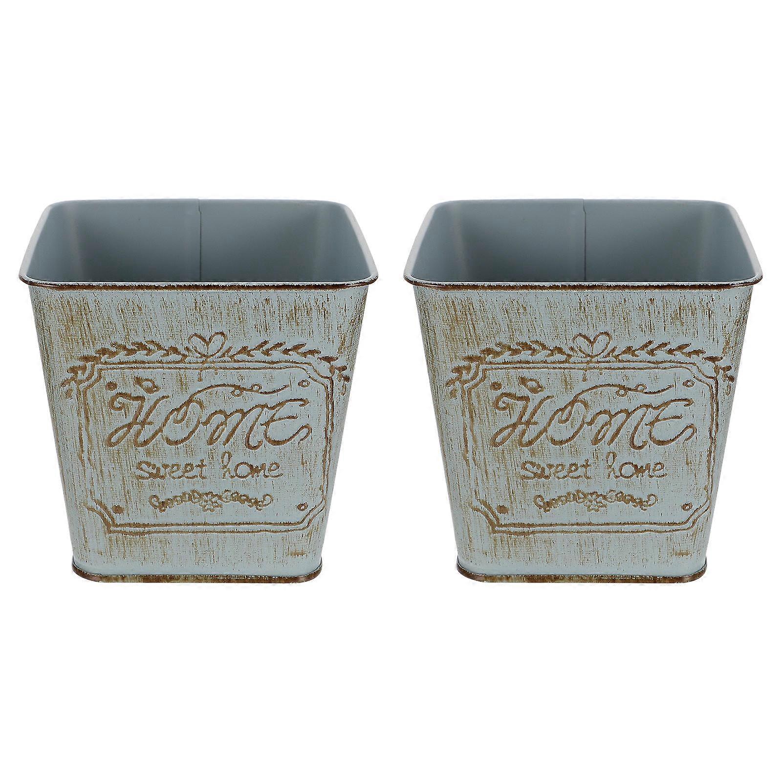 Retro Flower Bucket Metal Flower Pot Gardening Succulent Plant Pot Round Iron 2Pcs