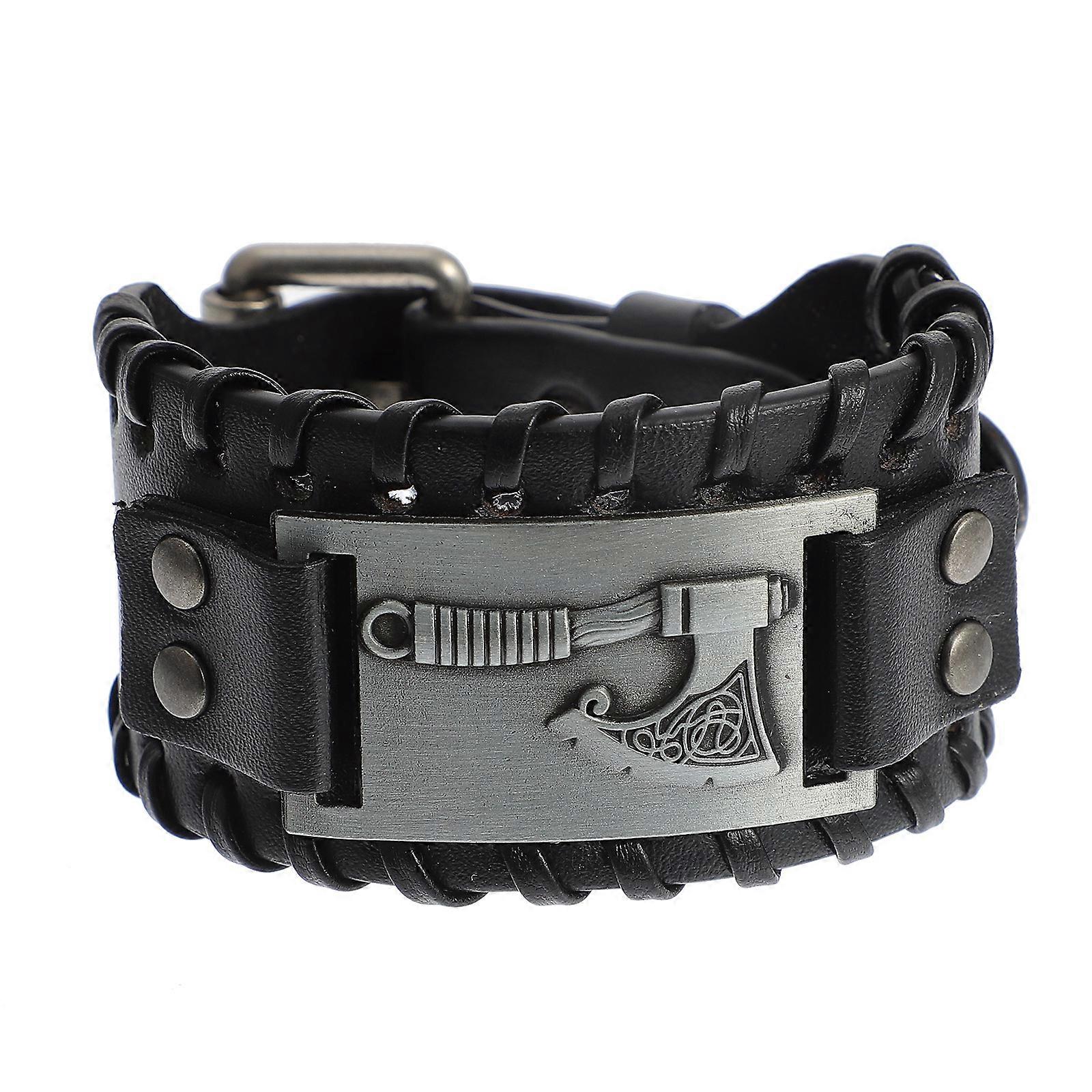 Retro Mens Bracelet Fashionable Hand Jewelry In Black Color With Artificial Leather 1Set