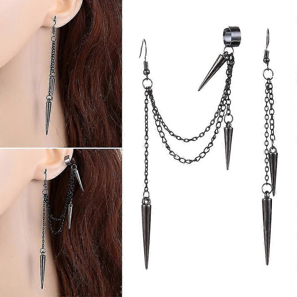 Retro Long And Short Rivet Earrings Ear Clips Fashion Goth Punk Tassel Earrings