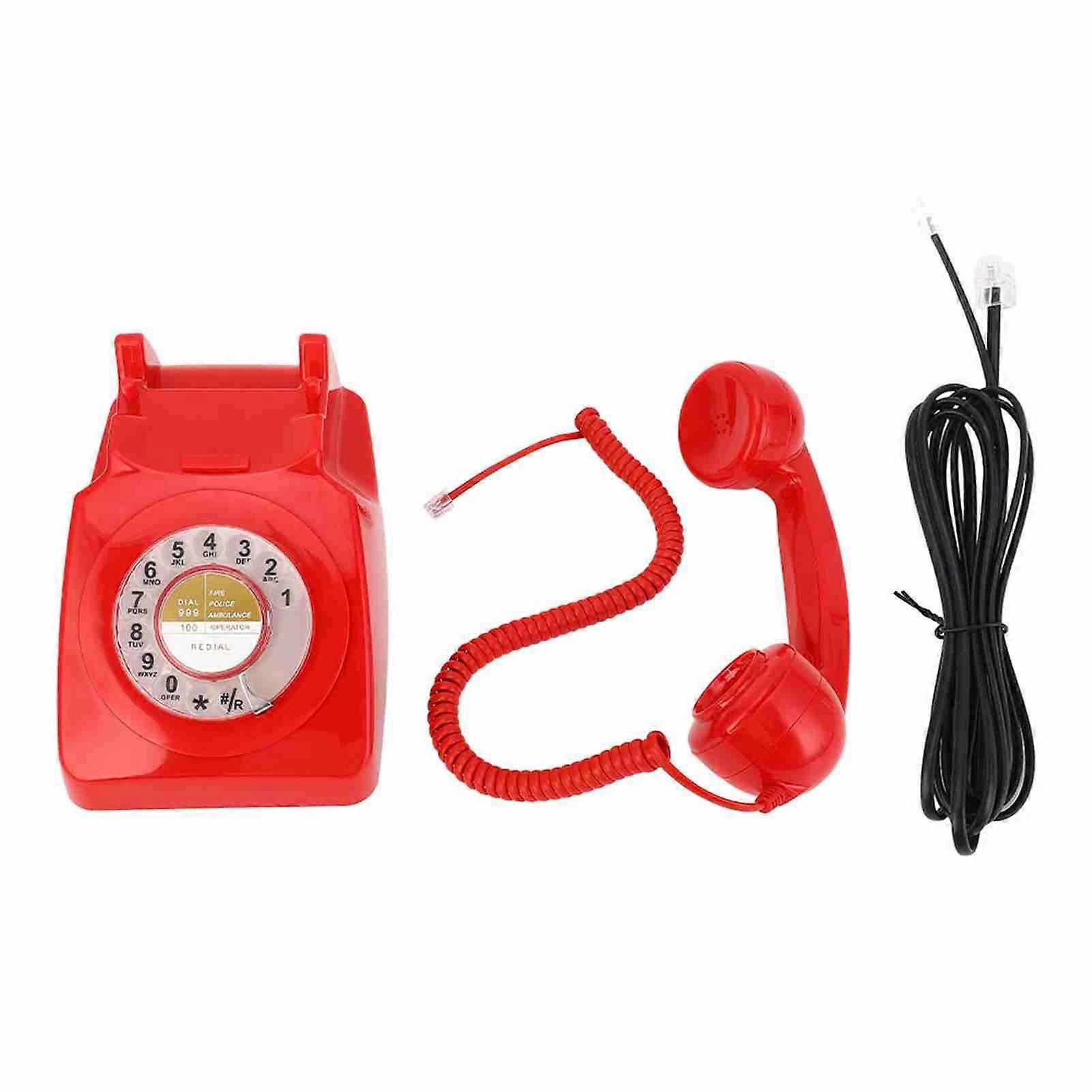 Retro Rotary Dial Telephone Vintage Landline Telephone Desk Phone(red)