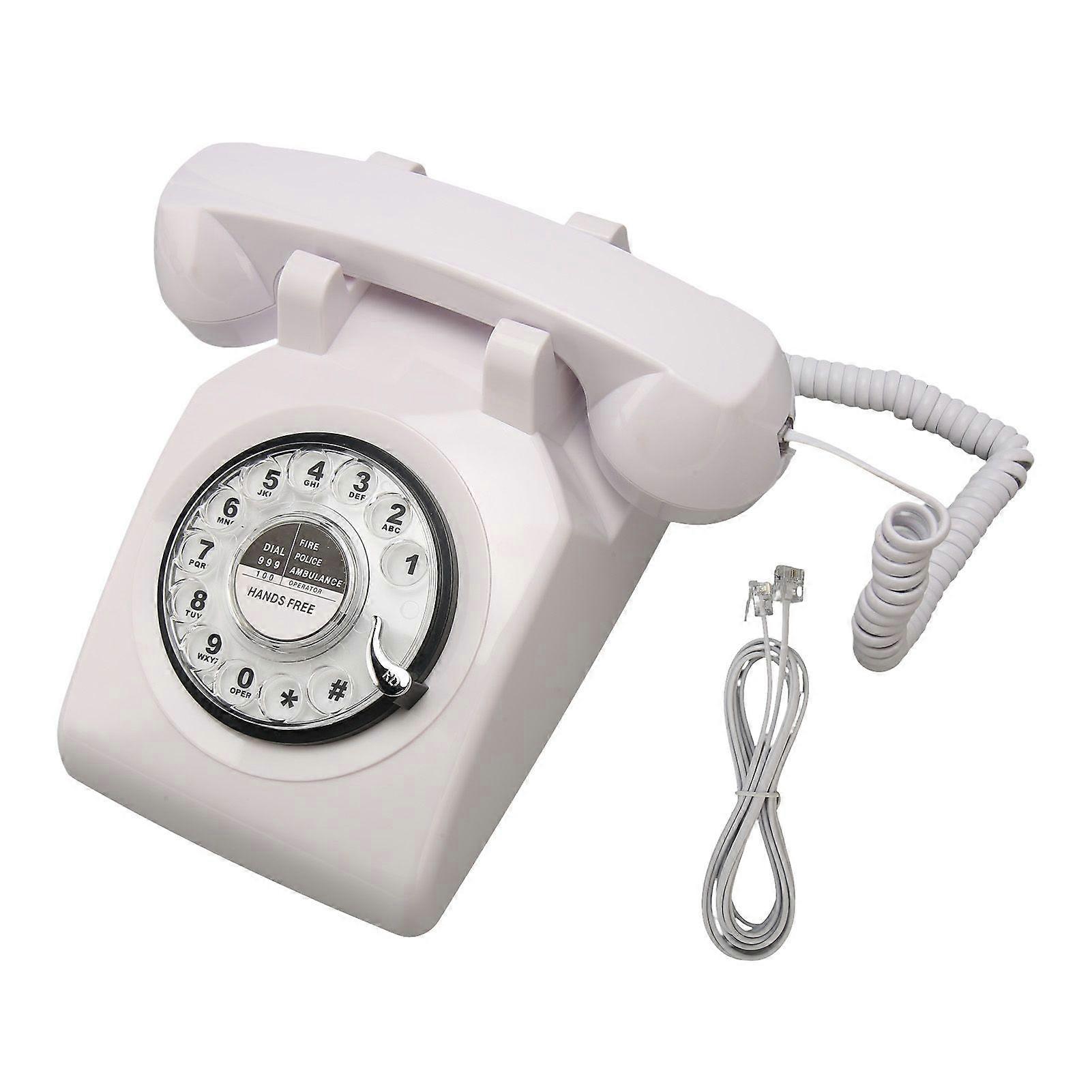 Retro Rotating Phone Old Fashioned Vintage Landline Phone with Mechanical Ringer Speaker for Household Office Hotel White