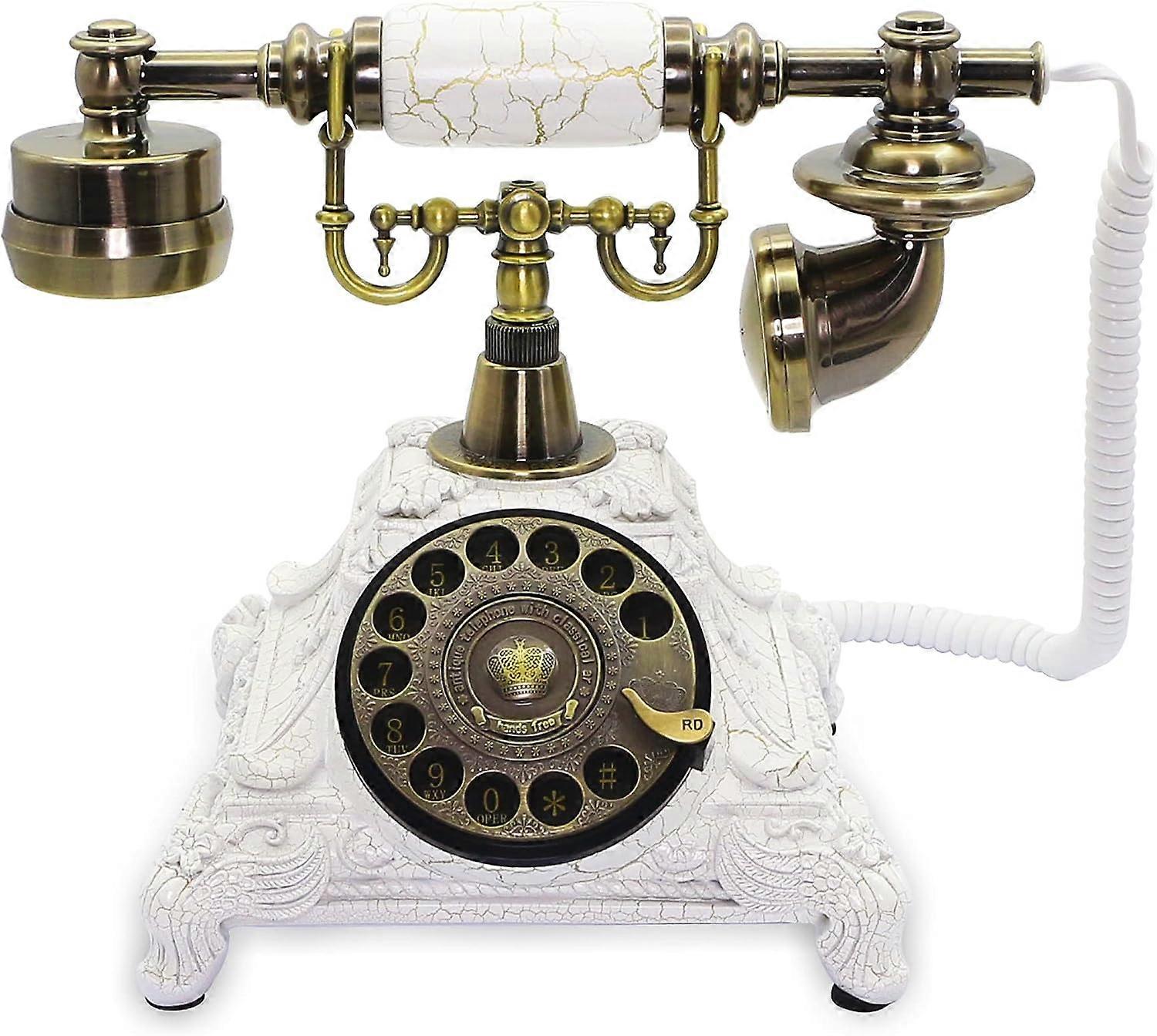 Retro Landline Telephone with Dial, Antique Telephone with Dial, Imitation Resin Landline Telephone, Decorative Home Office Telephone (White-117CS)