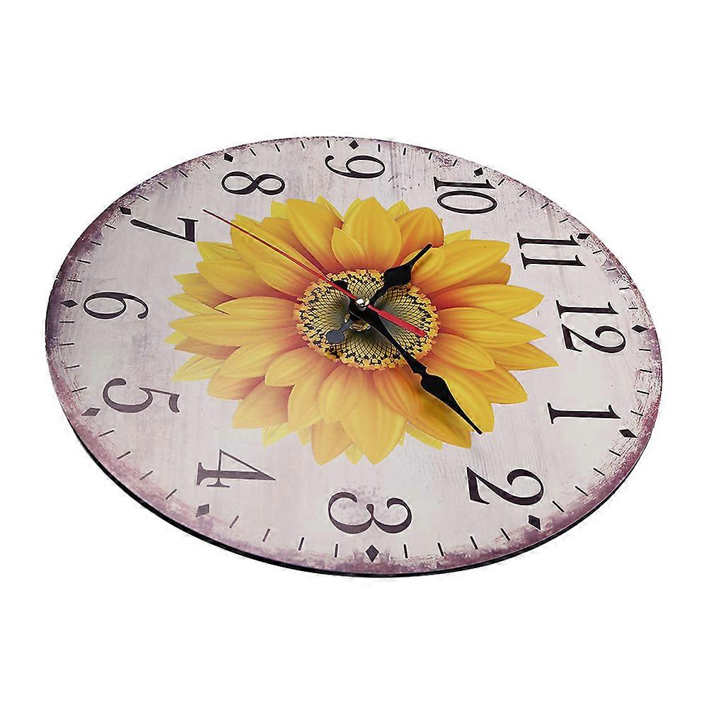 Retro Wall Clock Unique Decorative Sunflower 30cm Wooden Round Shape Silent Timekeeping for Living Room 1Set