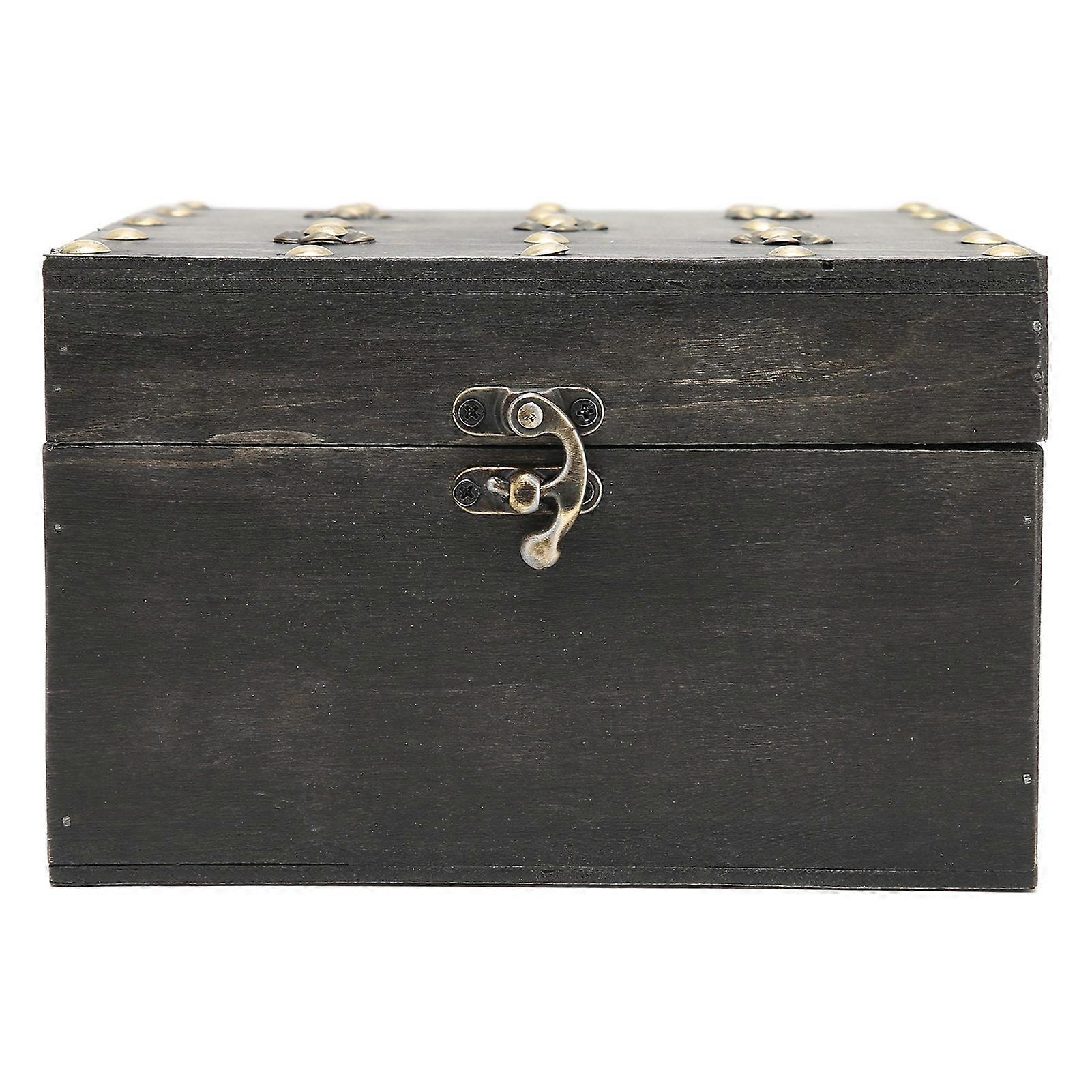 Retro Wooden Storage Box Metal Hinge Decorative Treasure Storing Chest Organizer for Home Office