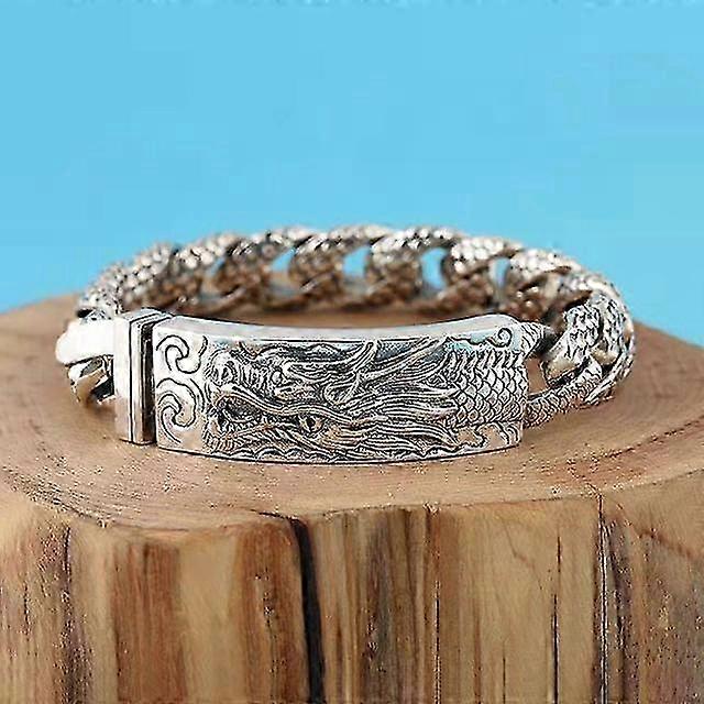 Retro Domineering Silver Bracelet Men Tang Grass Pattern Chain Hegemony Fashion Jewelry 22cm silver