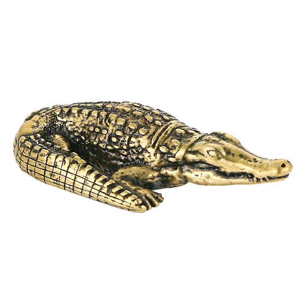 Retro Brass Crocodile Figurine, Vintage Style Animal Ornament, Compact Desktop Decoration for Home, Unique Brass Craft Statue