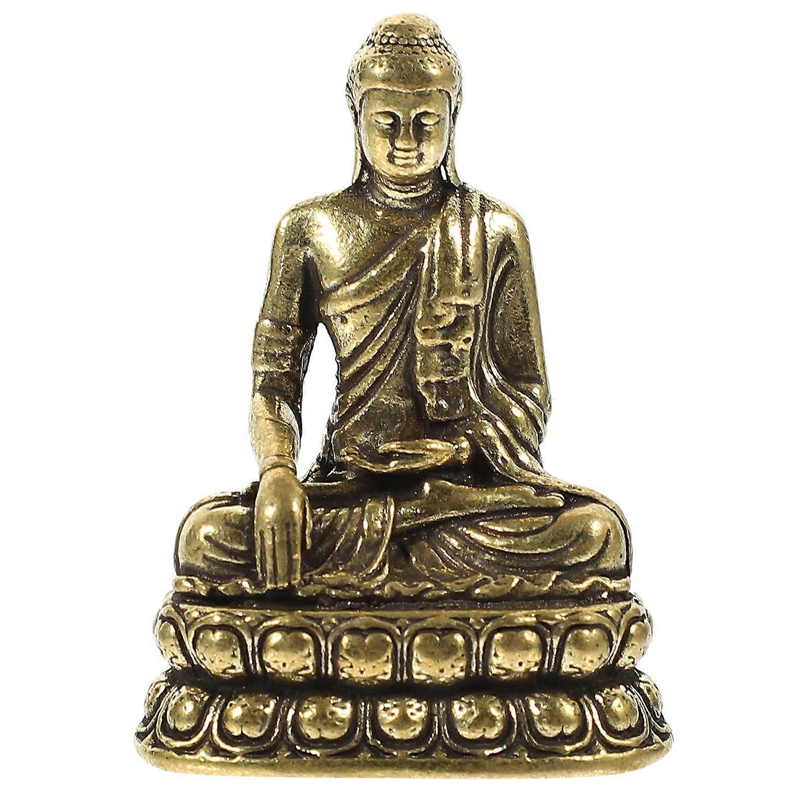 Retro Brass Buddha Statue Desktop Buddha Sculpture Sakyamuni Adornment Brass Buddha Decor