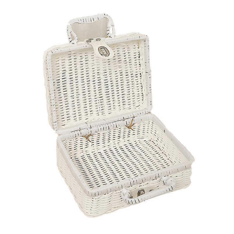 Retro Woven Picnic Box - Plastic Rattan, Odorless, White, Outdoor Storage with Ring Shaped Handle