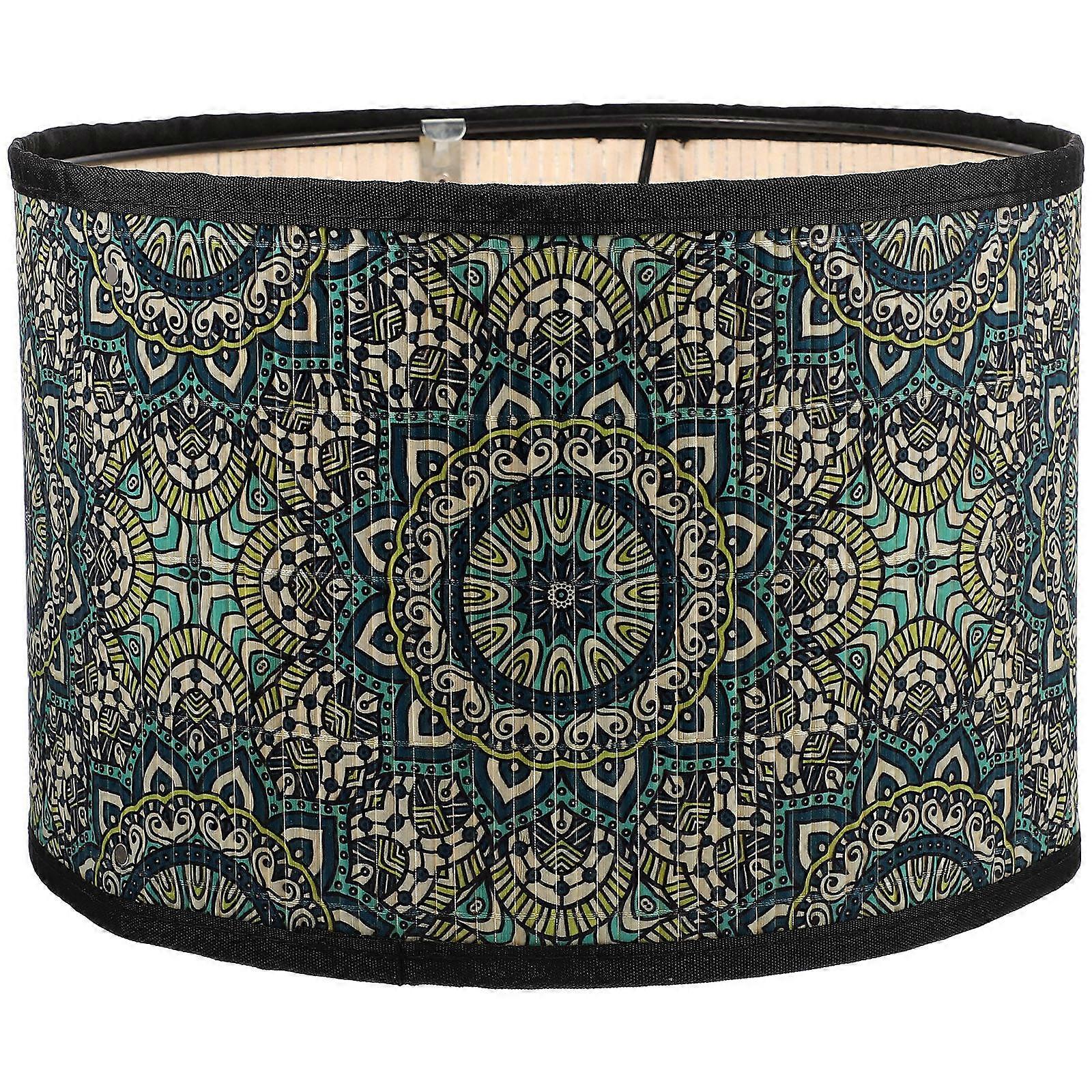 Retro Tall Drum Lamp Shade Bamboo Iron Home Decoration Dark Green 30x30x20cm Softens Bright Light 1Pcs