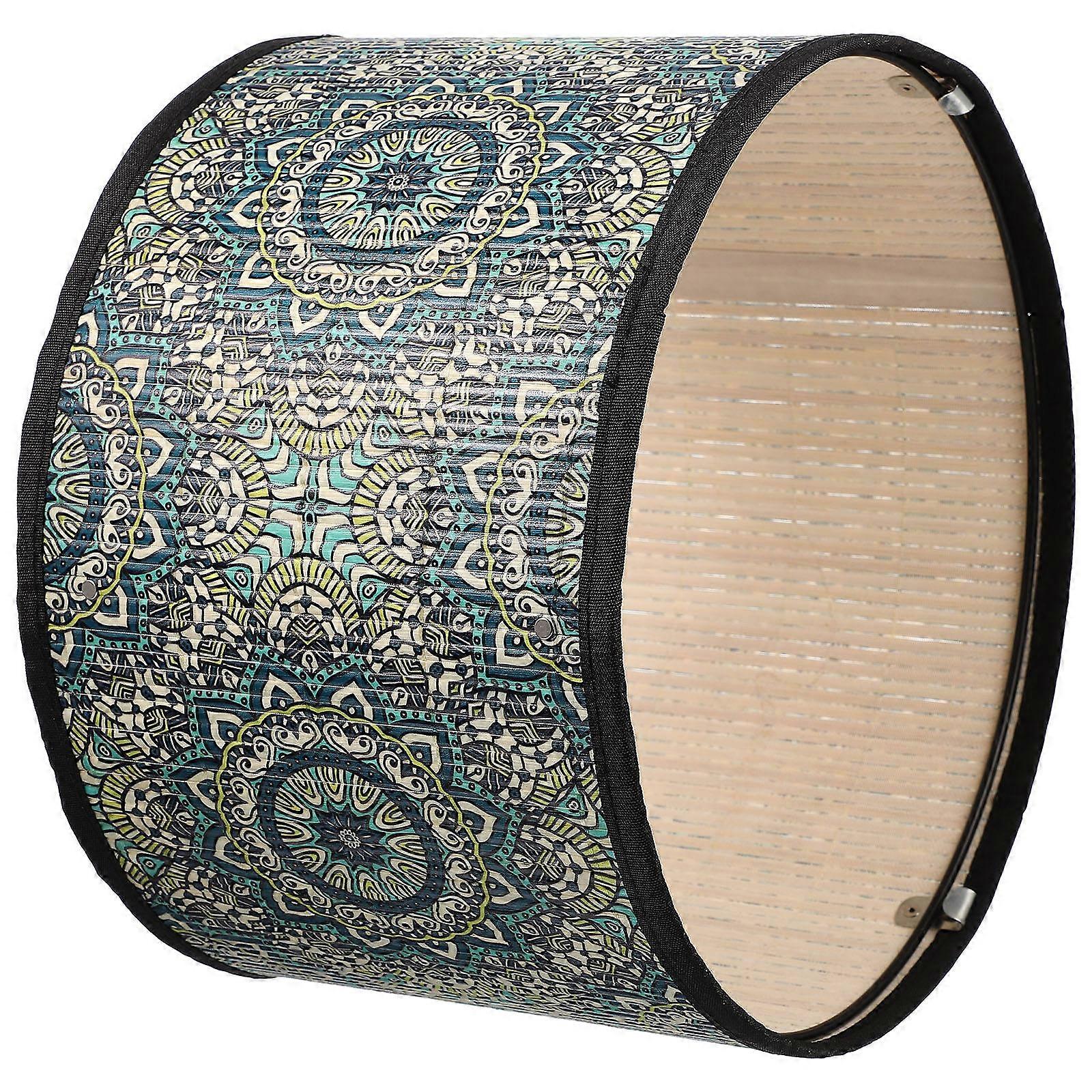 Retro Tall Drum Lamp Shade Bamboo Iron Home Decoration Dark Green 30x30x20cm Softens Bright Light 1Pcs