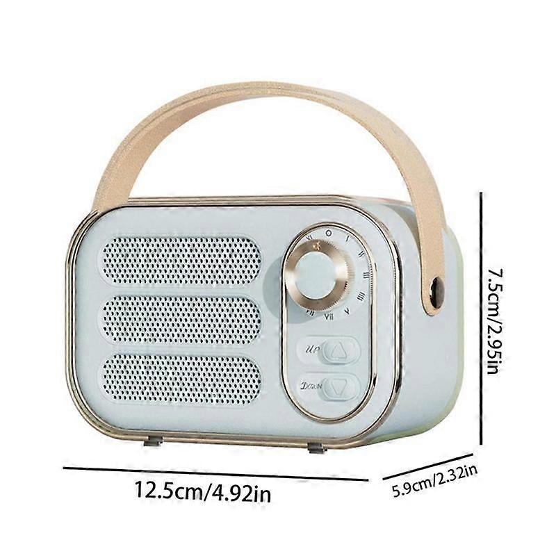 Good Sound: 360 Surround High-Fidelity Sound. Multifunctional Audio: Playback, insert memory card playback, USB playback. One-Key Hands-Free Answering: No matter whether in any playback mode, the speaker can answer the phone hands-free on the speaker when the call comes. Vintage Design: Classic design, knob adjustment. Light and Exquisite: compact and portable, firm and durable, and easy to carry outdoor size: 12.5 x 7.5 x 5.9cm Material: plastic colour: green Package Contents: 1 x stereo 1 x charging cable 1 x audio cable Only the above package content, other products are not included. Note: Light reflection and different displays may cause the color of the item in the picture a little different from the real thing. The measurement allowed error is +/- 1-3cm.