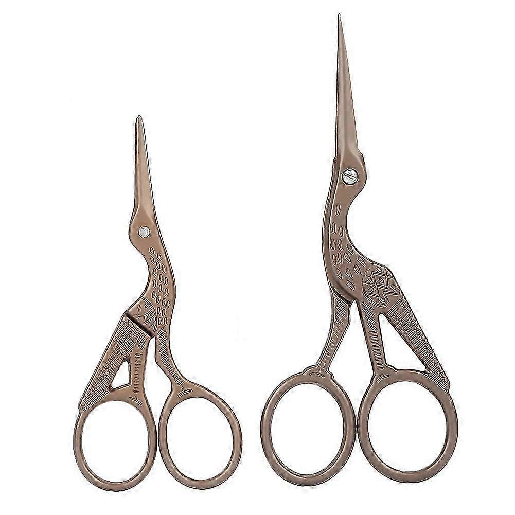 Retro Titanium Black Stainless Steel Carving Crane Shape Two Sizes Sewing Scissors