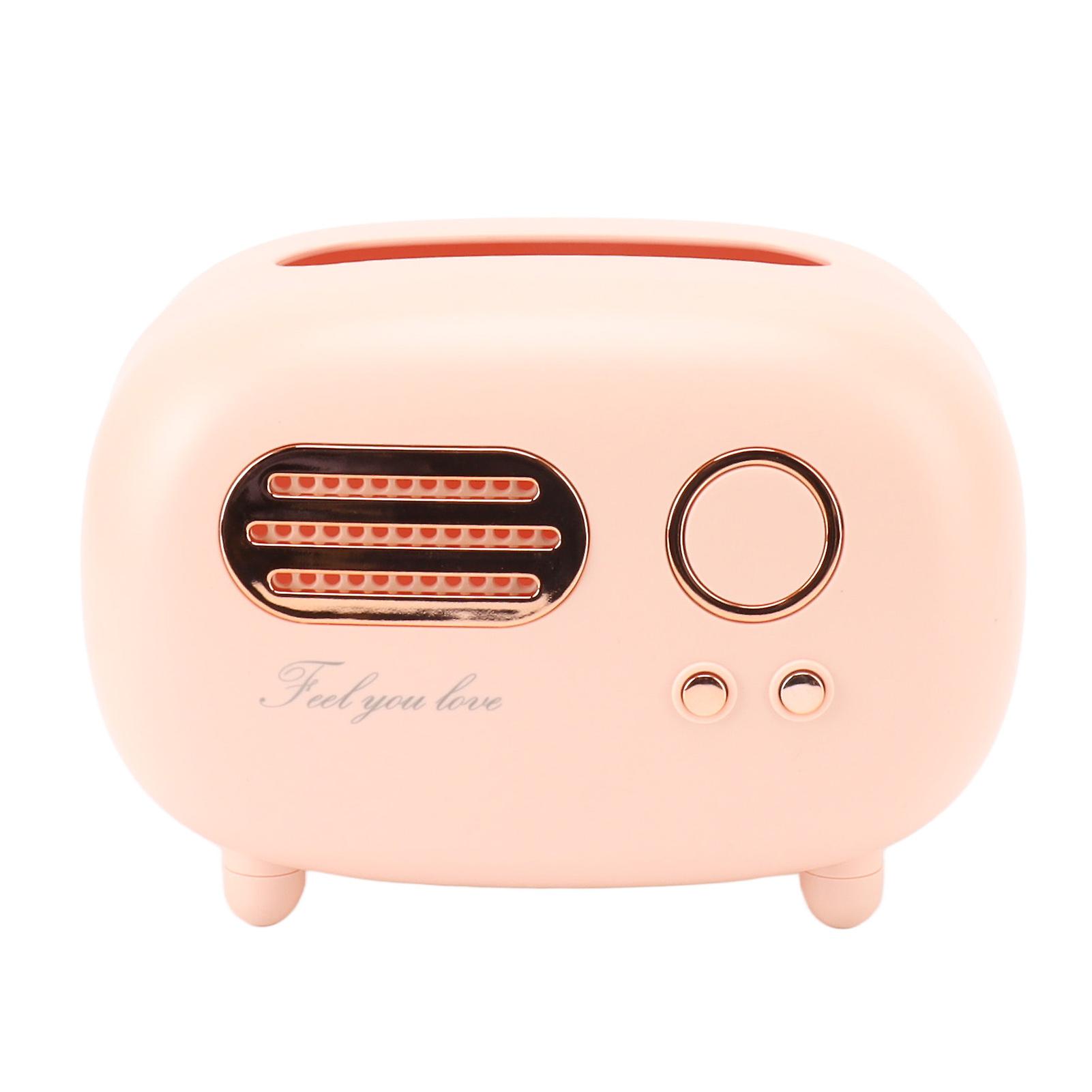 Retro Radio Tissue Box Large Multipurpose Facial Tissue Dispenser for Living Room Bathroom Bedroom Bedside Table Pink