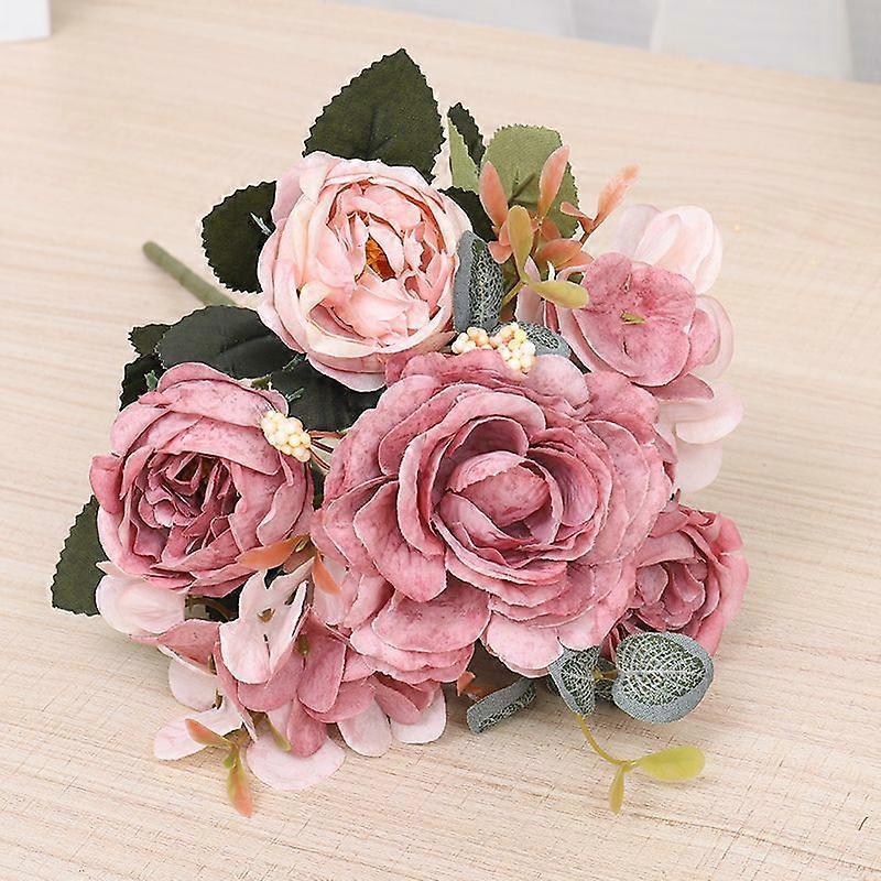 Retro Artificial Flower Bouquet Silk Rose Hydrangea Peony Vintage Bridal Bouquet Wedding Home Decor Accessories