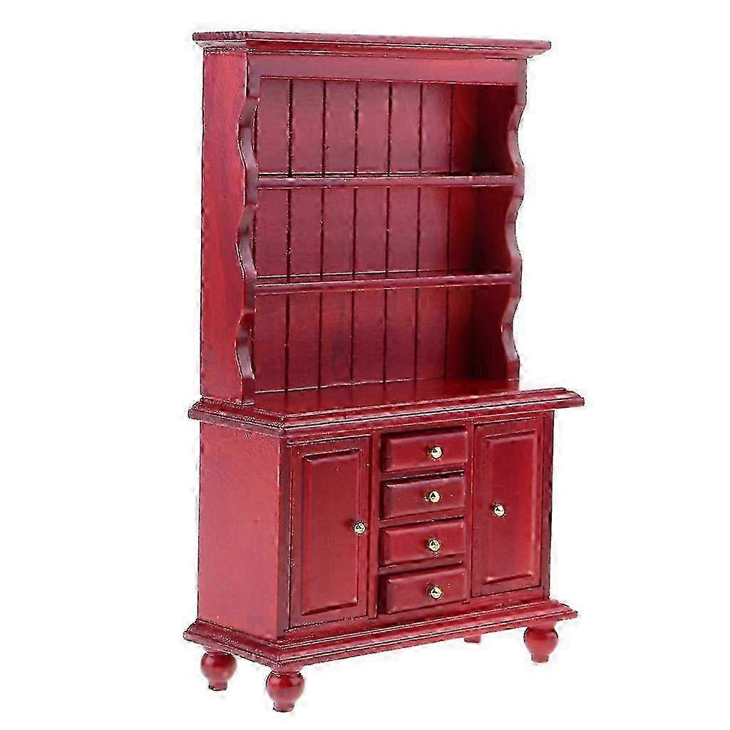 Retro 1/12 Wood Bookshelf Cupboard Dollhouse Living Room Kitchen Miniature Display Decor Accessories Red