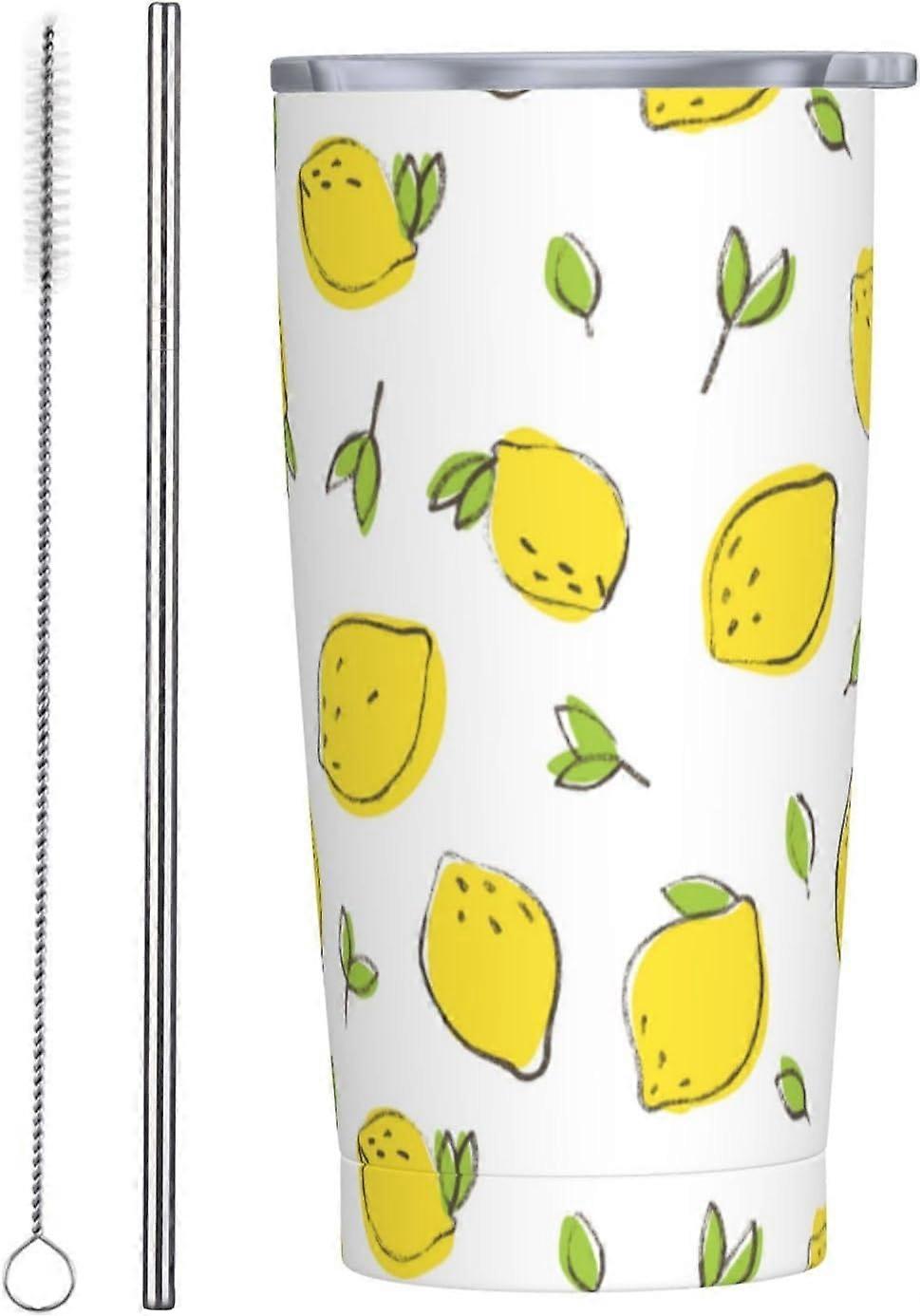 Lemon Tumbler 20oz Green Leaves Stainless Steel Insulated Tumblers with Lid and Straw Travel Coffee Mug Tea Wine Cups Water Bottle Sport Gifts for Wom